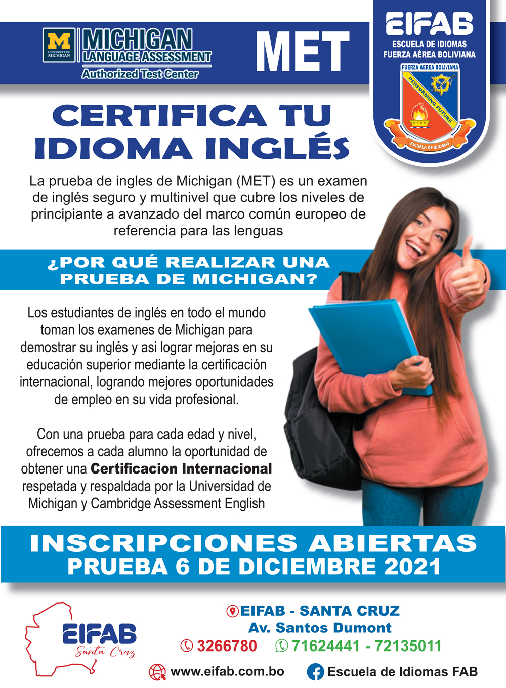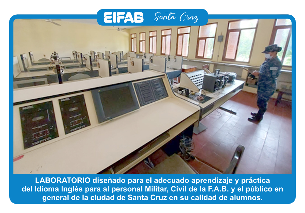 El Departamento V-EMGFAB previo estudio y planificación bajo la dependencia del Comando General de la FAB, dio por misión a la EIFAB “Impartir la enseñanza de Idiomas de Ingles como segunda lengua y otros que requieren a la institución, permitiendo a su Personal Militar, Administrativo de la FAB, familiares y población civil, a fin de satisfacer los requerimiento institucionales de la población”.