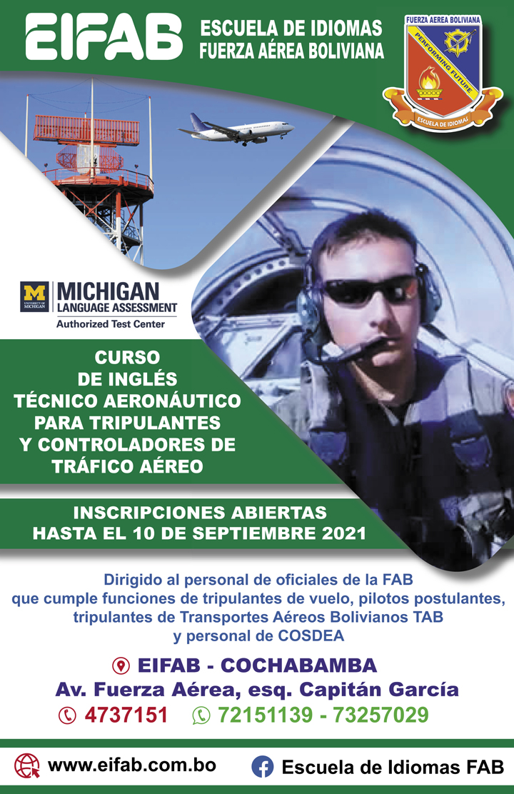 Actualmente la Escuela de Idiomas de la FAB funciona en la ciudad de Cochabamba desde el 7 de Enero del 2010 y se constituye en la primera Escuela de Idiomas de la Fuerza Aérea Boliviana en enseñar el idioma en lengua nativa “Quechua”.